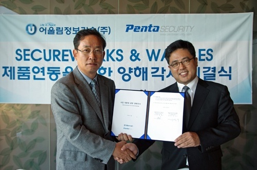 어울림정보기술(대표 박동혁)과 펜타시큐리티시스템(대표 이석우)은 네트워크 보안 솔루션 연동 및 마케팅 활동 공조를 통해 양 사 제품의 국내 시장점유율을 확대하고자 업무협약을 체결했다고 12일 밝혔다.