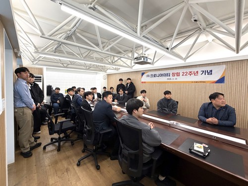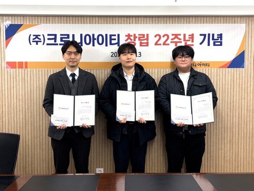 창립기념식에서 이해관 대표이사님은 22년 동안 크로니아이티가 성장하는데 도움을 주신 모든 분들에 대한 감사 인사와 함께, 현재 지속적으로 진행하고 있는 업무 체계화 활동의 가시적인 성과들이 고객과 협력사로부터 긍정적인 피드백과 칭찬을 통해 나타나고 있으며, 앞으로도 보다 다양하고 세밀한 분석을 통하여 어떠한 환경에서도 어려움 없이 업무를 수행할 수 있는 체계를 만들어 나가자고 당부하셨습니다.